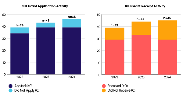 NIH Grant Application and Award Engagement by Survey Year, 2022–2024