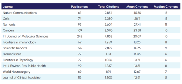 Research areas such as oncology, molecular biology and neuroscience tend to achieve higher average citation rates, while clinically oriented and educational domains, though often higher in volume, tend to have lower citation intensity.