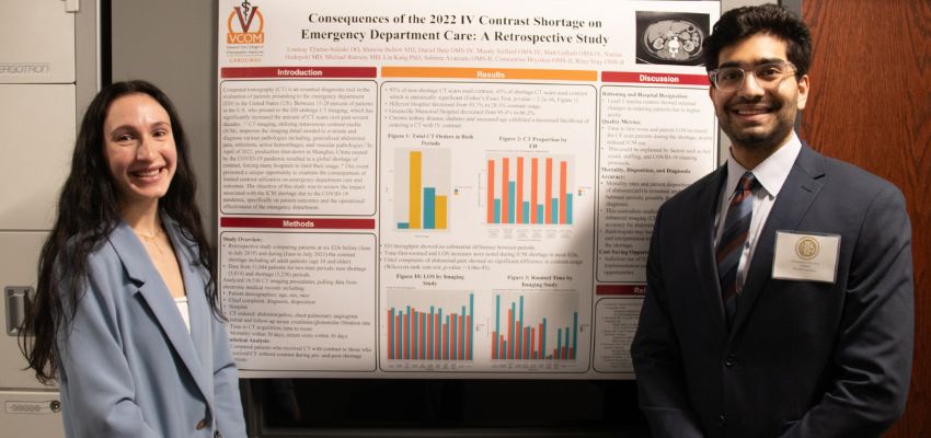 Photo: Two VCOM-Carolinas’ students pose with their Research Day poster.
